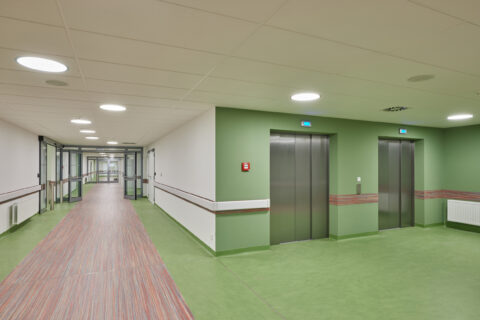 Cílem první etapy byla výstavba dvou nových pavilonů. Pavilon K bude sloužit jako centrální budova, ve které pacienti absolvují vyšetření a kde bude probíhat veškerá operativa. Následnou péči pak zajistí lůžkový pavilon J s kapacitou až 150 lůžek.
