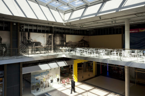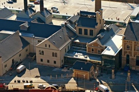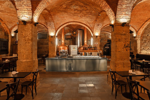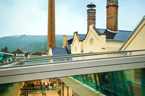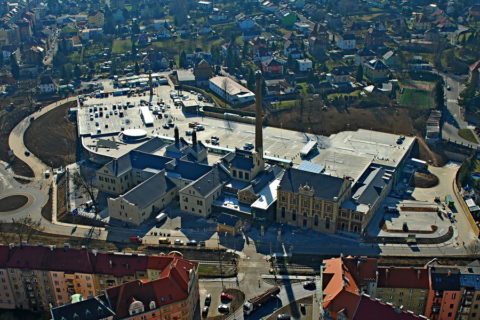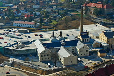 The original building was reconstructed and carefully complemented by new modern architectural elements while preserving original elements such as the 1905 brewery gate, the two brewery chimneys, spacious vaults, and romantic corners that give the project its specific atmosphere. The entire complex is situated on a slope, so part of the new building is hidden under the ground and the parking lot is situated on the roof of the facility. The building was nominated for the 2014 Construction of the Year.